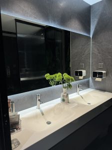 Đá Solid Surface uốn cong 3D cho phép ghép nối không lộ mạch, tạo cảm giác liền khối – yếu tố rất quan trọng với các công trình cao cấp tại trung tâm thành phố.